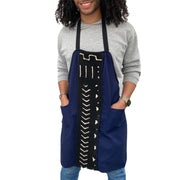 Apron for Him or Her, Gift for Cook, Handwoven Mudcloth Cotton Apron, Blue and Black Apron, Reversible Apron, Geometric Print Apron