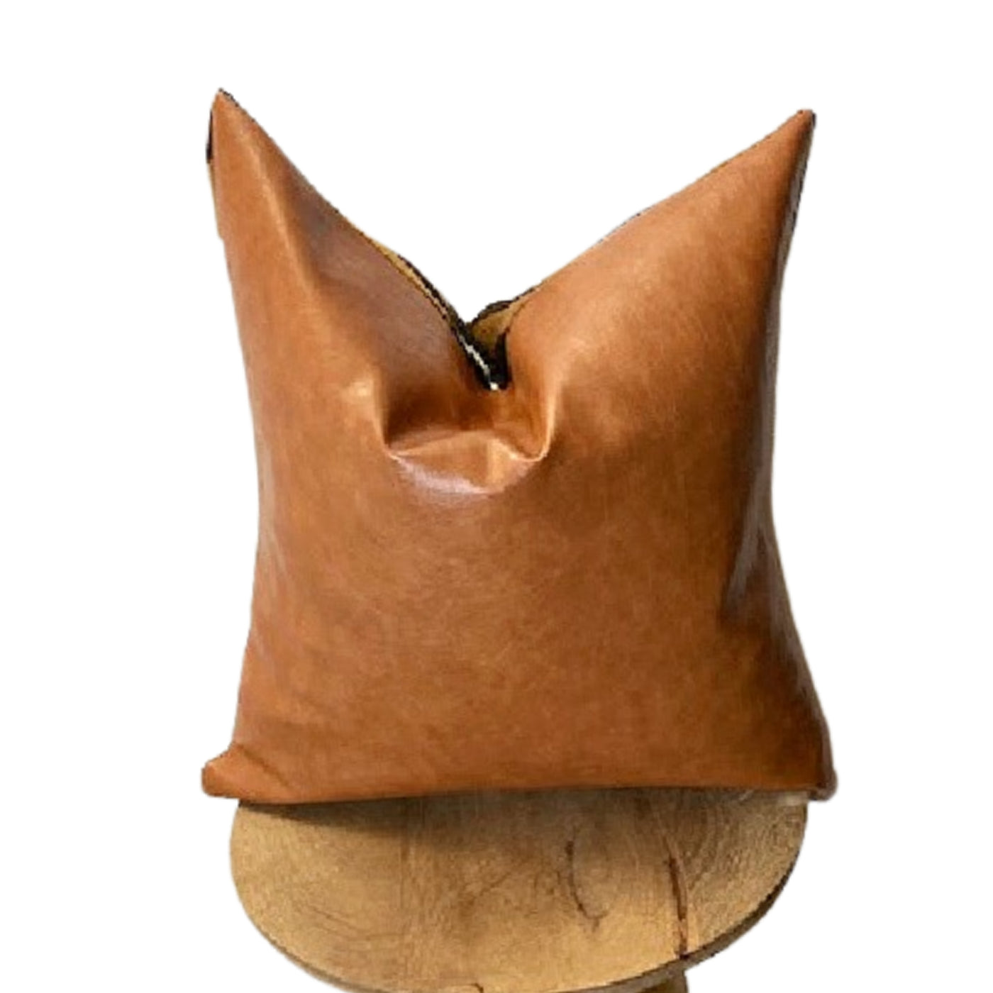 The back of the pillow is all vegan leather and it closes with an invisible zipper. An eco-friendly, meaningful and beautiful decorative pillow constructed in our Studio.