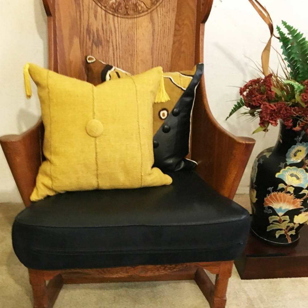 The handwoven mud cloth pillow is made from handwoven strips of cotton imported from Mali in Africa.